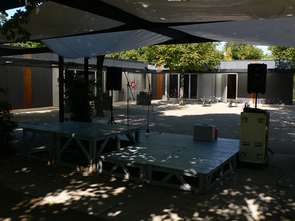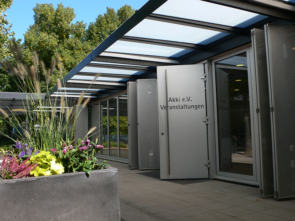 Die Stadt Düsseldorf hat 1994 dem Verein Akki die Südpark-Pavillons an der Siegburger Straße für seine kulturpädagogischen Aktivitäten kostenfrei überlassen.