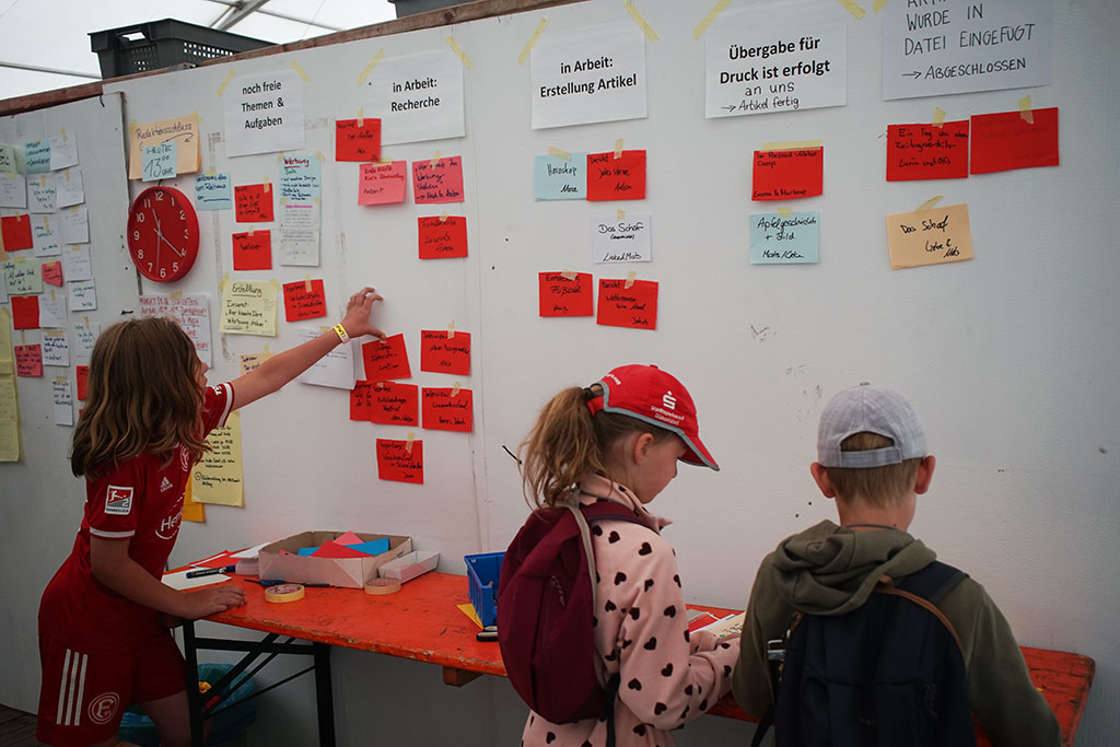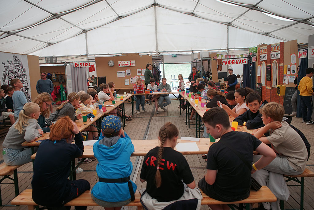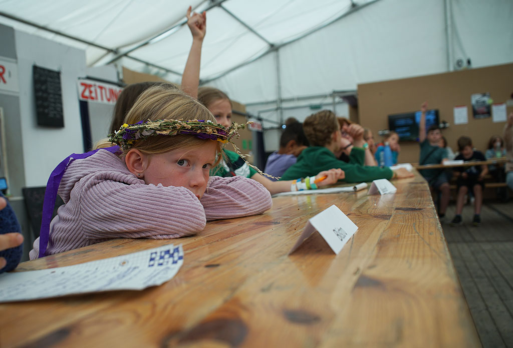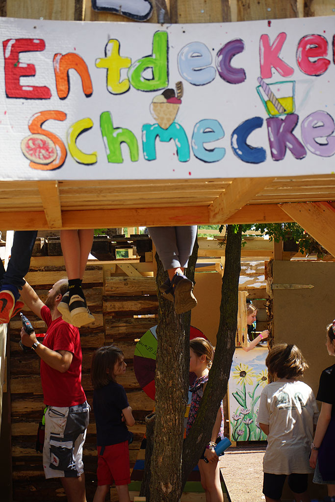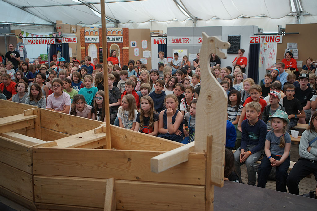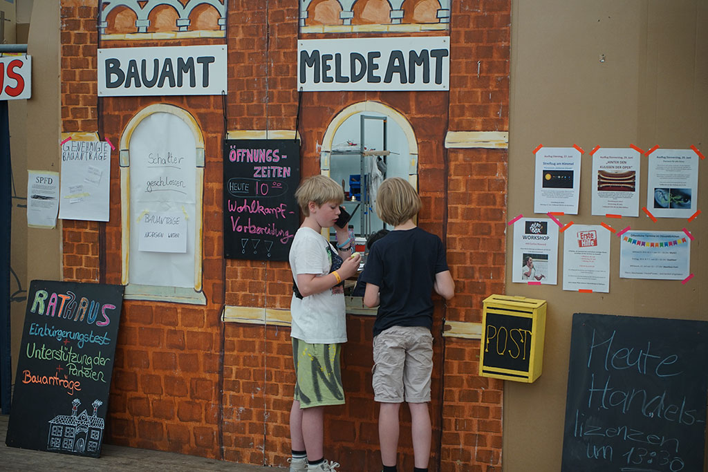 275 Kinder, 16 Werkstätten, Auftritte, Experimente, Stadtversammlung, Werkzeugführerscheine, Kunst, Interviews, lesen, lachen, Demokratie erleben, Eis essen und auch mal chillen, Geschäfte machen, Geld verdienen, Talente entdecken, Neues kennenlernen, ganz viel Holz, ganz viel Partizipation….