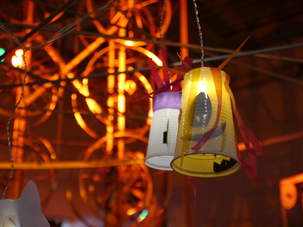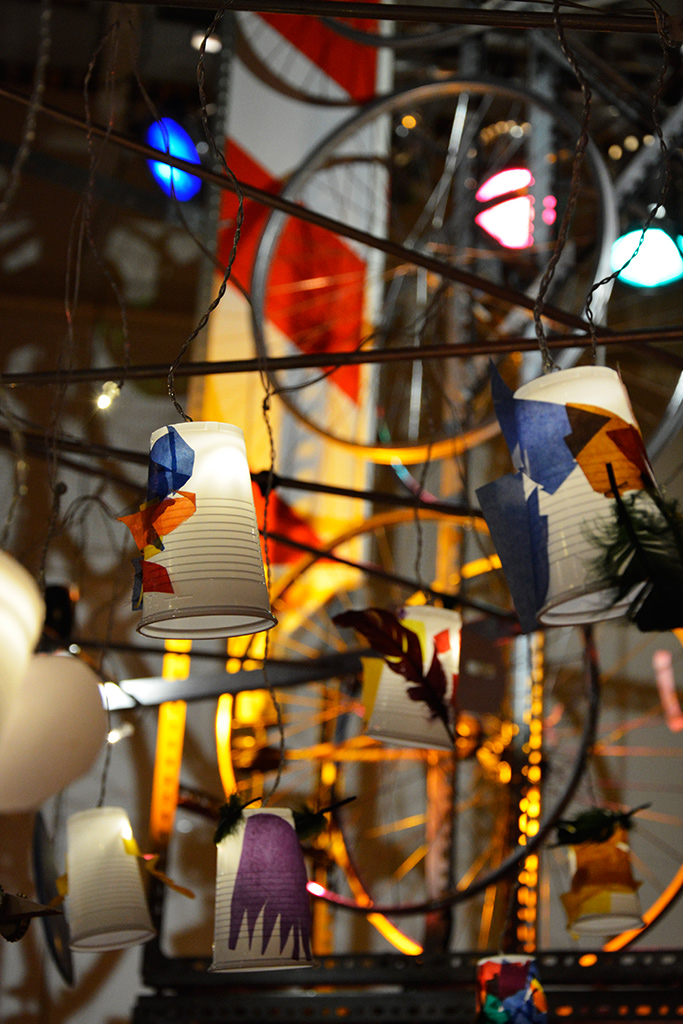 Die Besucher entwickeln die Apparaturen weiter: Mit neuen Lichteffekten und fantastischen Figuren oder mit Krachapparaten, die die Szenerie untermalen.