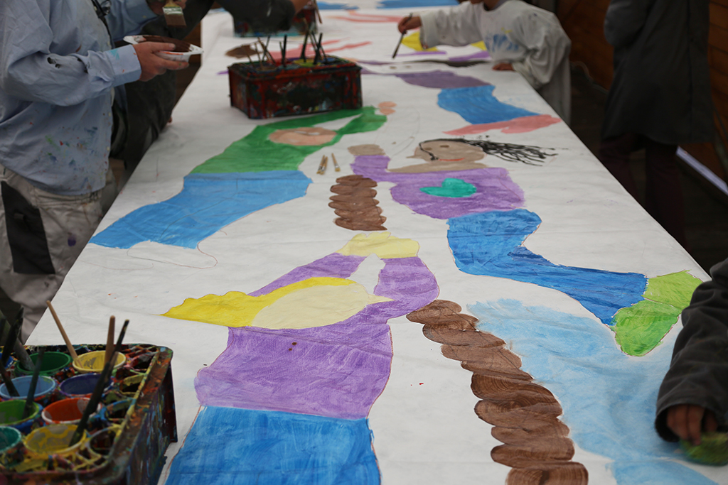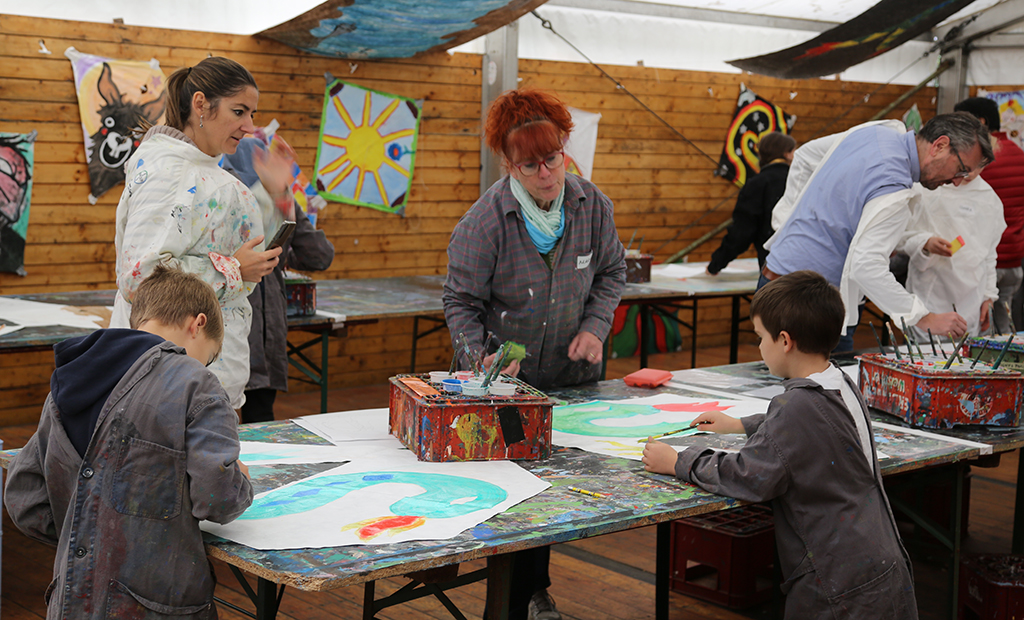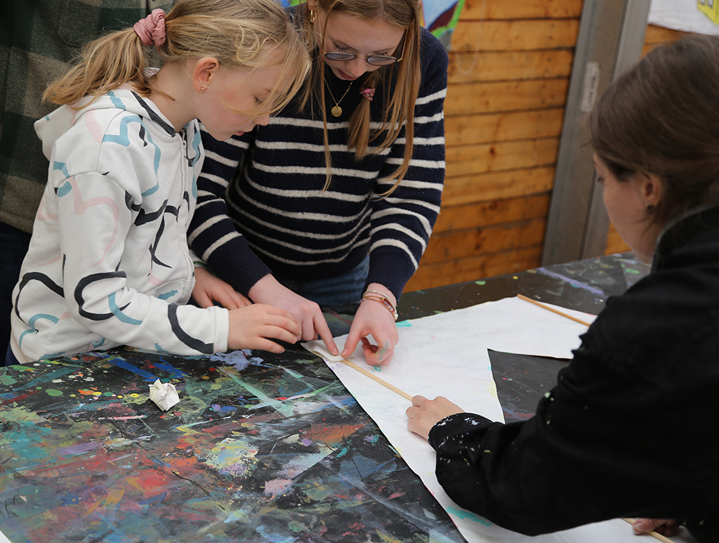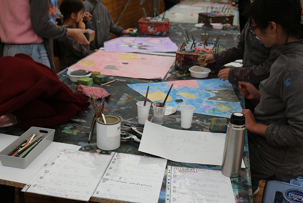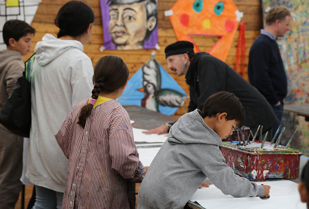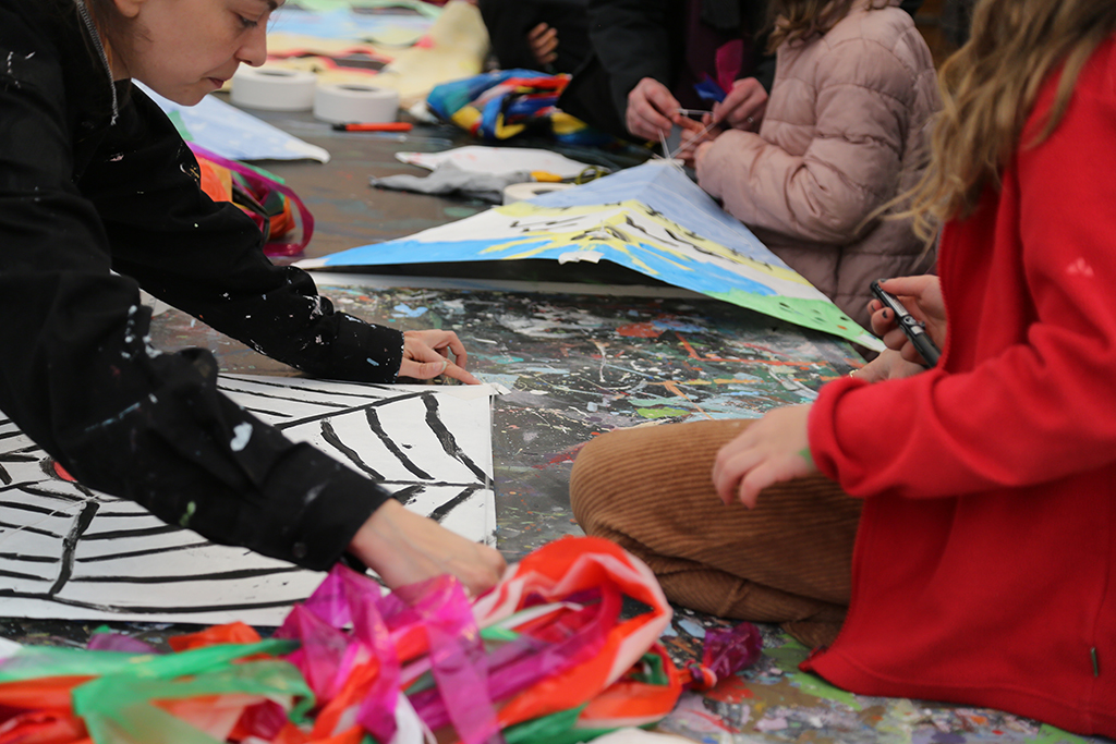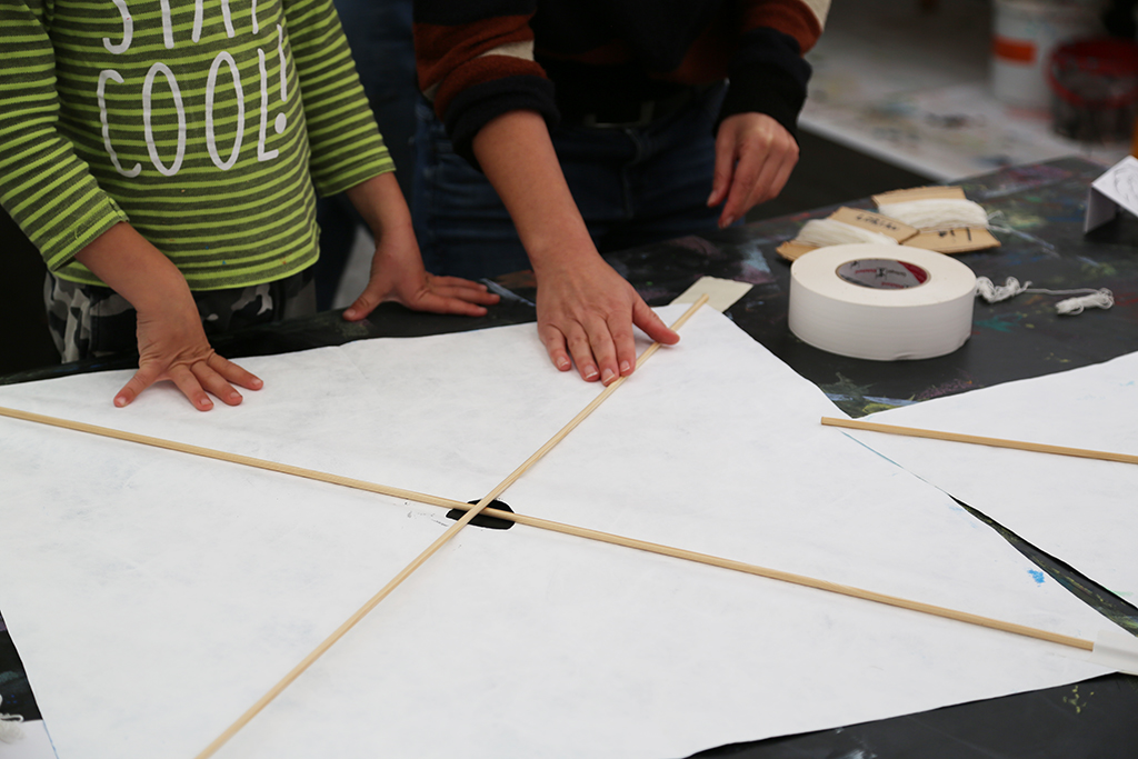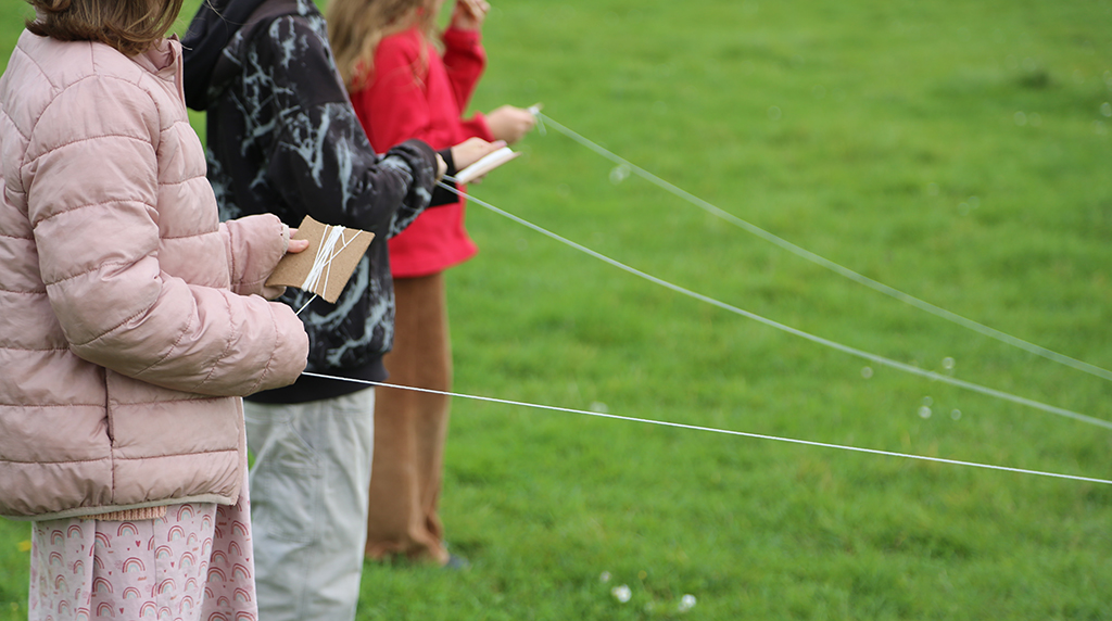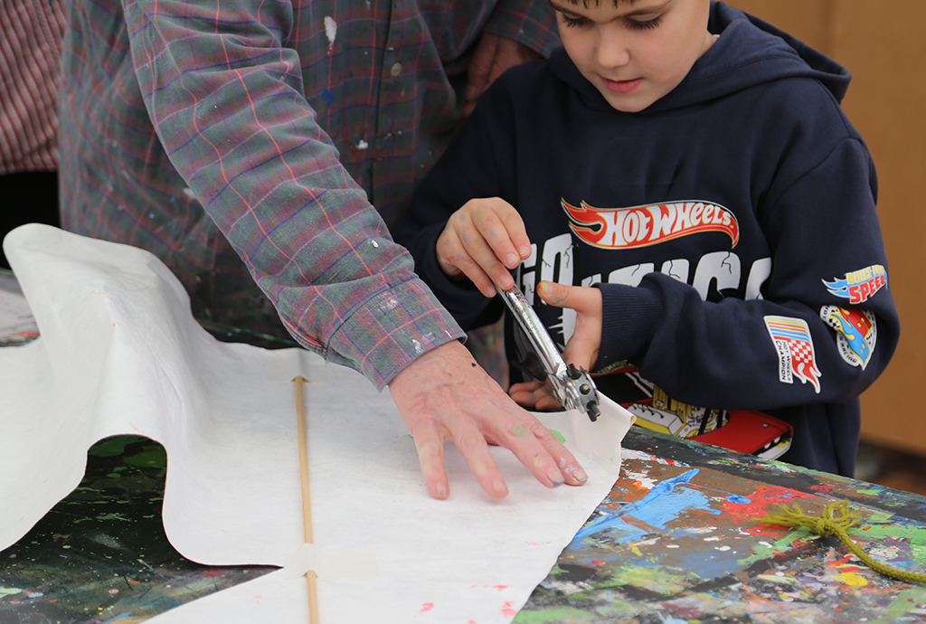 In der ersten Herbstferienwoche 2025 haben über 600 Kinder, Familien und OGS-Gruppen unsere Werkstattangebote auf der Oberkasseler Rheinwiese genutzt, um kleine Drachen und Himmelsriesen zu gestalten und vor der Düsseldorfer Skyline am Rhein unter fachkundiger Anleitung steigen zu lassen.