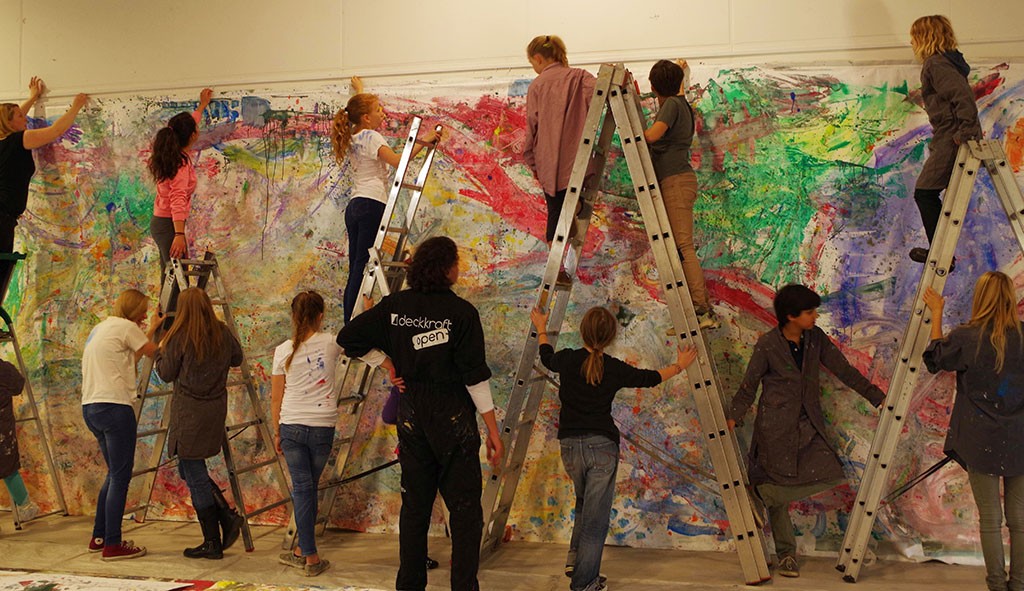Ein Kunstprojekt, bei dem 60 Kinder in 4 Werkstätten mit Düsseldorfer Maler*innen das Akki-Haus in ein begehbares Gesamtkunstwerk verwandelt haben.