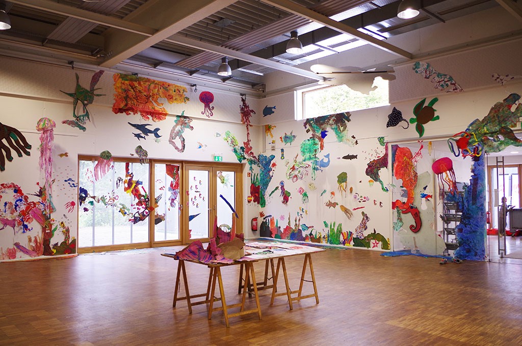 …wurde bei Wolf Raskin in eine selbst gemalte Unterwasserwelt voll fantastischer Lebensformen, farbiger Kunsttiere und Pflanzen.