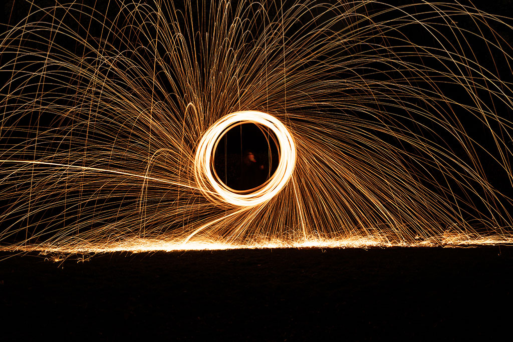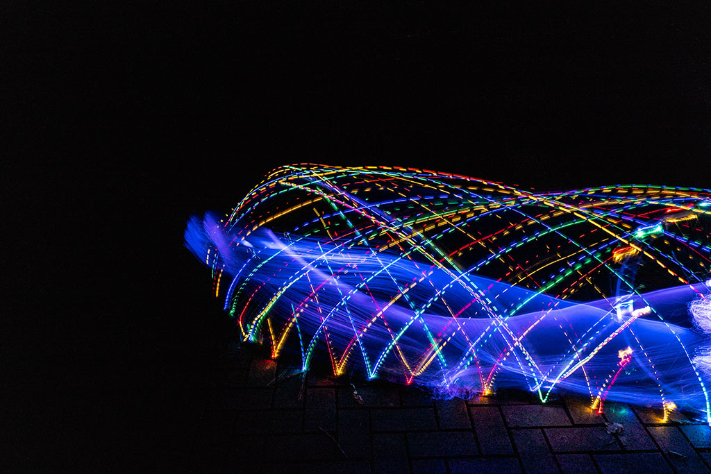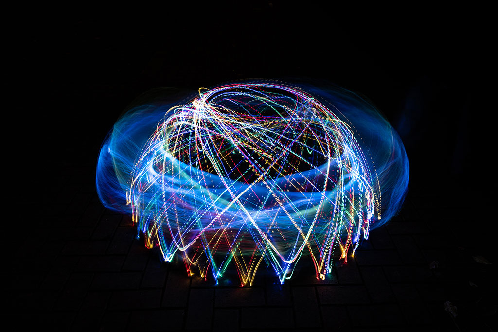 Sprühender Funkenregen, gekreuzt mit bunten Lichtbahnen und dies gespiegelt im Wasserlauf der Düssel! So sieht es aus, wenn mit Hilfe der Langzeitbelichtung und mobilen Lichtquellen mit Licht „gemalt” wird. Die Teilnehmer*innen (ab 12 Jahren) dieses Foto-Workshops haben diverse Leuchtmittel ausprobiert, kombiniert und kreative Konstruktionen gebaut, um auch dreidimensionale Formen aus Licht zu erschaffen.