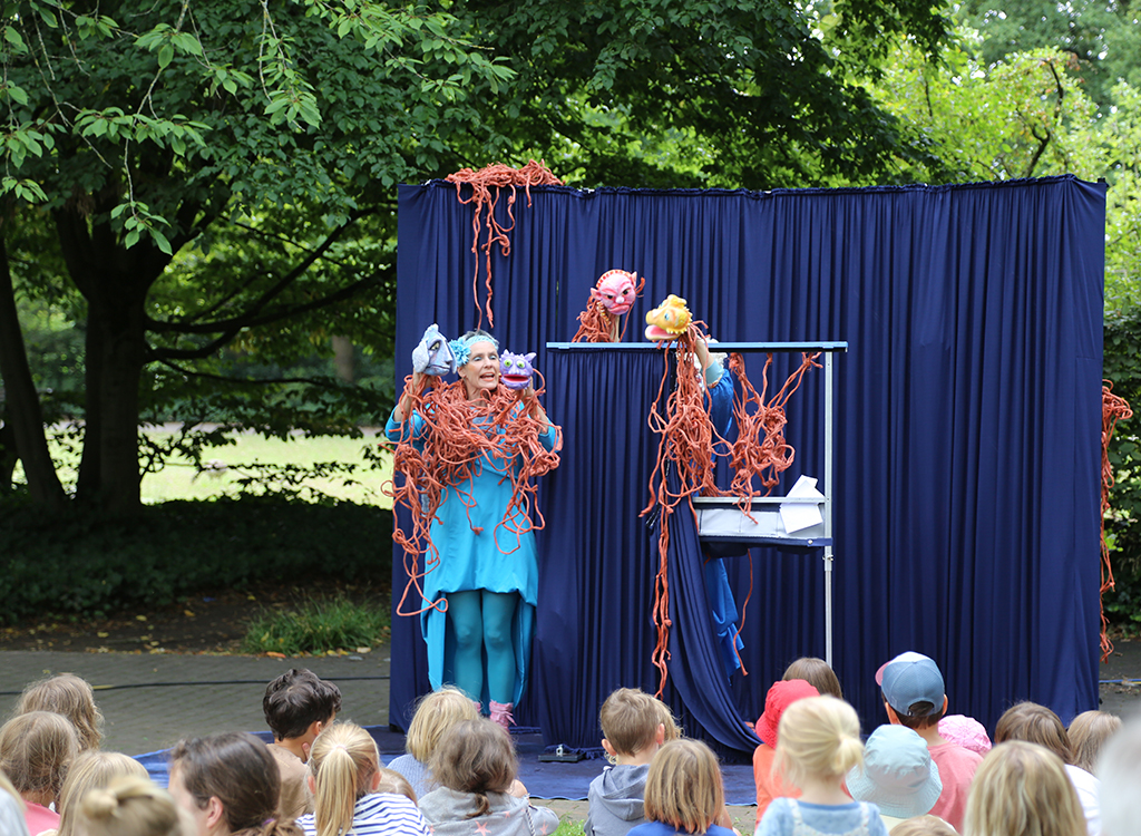 Vom 06. – 27.07.2025 gab es an 4 Sonntagen um 15 Uhr kostenfreie Theatervorstellungen für die ganze Familie im Bürgergarten neben dem Akki-Haus oder bei Regen in der Akki-Halle. Außerdem fanden an zwei Wochentagen Gruppenvorstellungen für Kitas und Schulen statt.